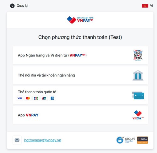 Đối với VNPAY, thí sinh có thể sử dụng các phương thức: thanh toán qua Quét mã QR/Thẻ nội địa & tài khoản ngân hàng/Thẻ thanh toán Quốc tế/Ví điện tử VNPAY
