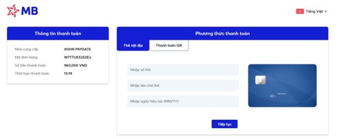 Đối với MBPAY, thí sinh có thể sử dụng các phương thức: Thanh toán qua quét mã QR hoặc thẻ nội địa.