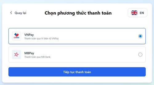 Thí sinh chọn phương thức thanh toán qua VNPAY hoặc MBPAY